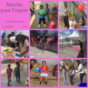 La marche, qui a réuni un des familles et des professionnels du complexe Lé Koklaya, a été l’occasion de manifester ensemble un message fort d’unité et de solidarité. Elle a débuté dans une atmosphère conviviale et déterminée, avec une énergie collective palpable qui a traversé les rues de la ville des Abymes, partenaire de l’évènement.